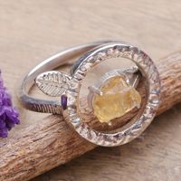 "Center of joy and success, the freeform citrine that embellishes this sterling silver cocktail ring invites your soul to live in eternal happiness. Artisan Sehal Agarwal of India combines classic and advanced techniques to craft this superb piece, enriched by a combination of polished and hammered finishes."