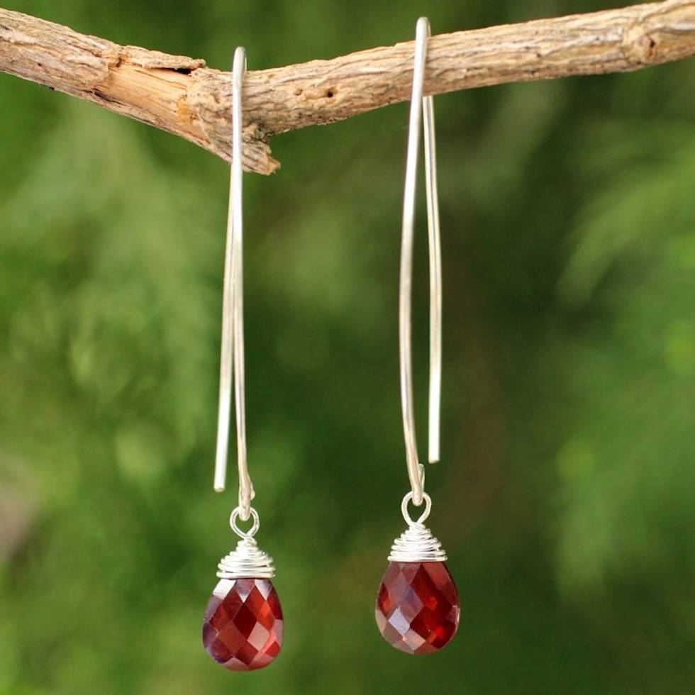 Sterling Silver and Garnet Dangle Earrings 'Sublime' Item ID: 2669926626