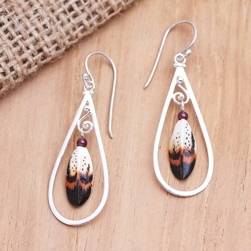 Sterling Silver and Garnet Dangle Earrings 'Feather in Your Cap' Item ID: 2671747251