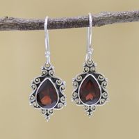 Sterling Silver and Garnet Dangle Earrings from India 'Red Intricacy' Item ID: 2669944205