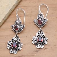 Sterling Silver and Garnet Dangle Earrings 'Garden Charm' Item ID: 2671471651