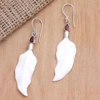 Sterling Silver and Garnet Leaf-Motif Earrings 'Pale Leaves' Item ID: 2671746671