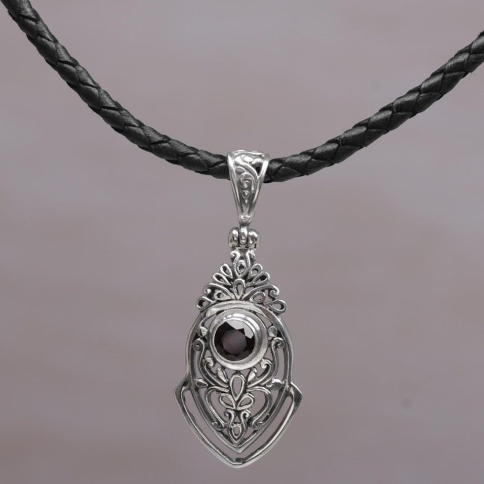 Sterling Silver and Garnet Pendant Necklace from Indonesia 'Bali Amulet in Red' Item ID: 2671734209