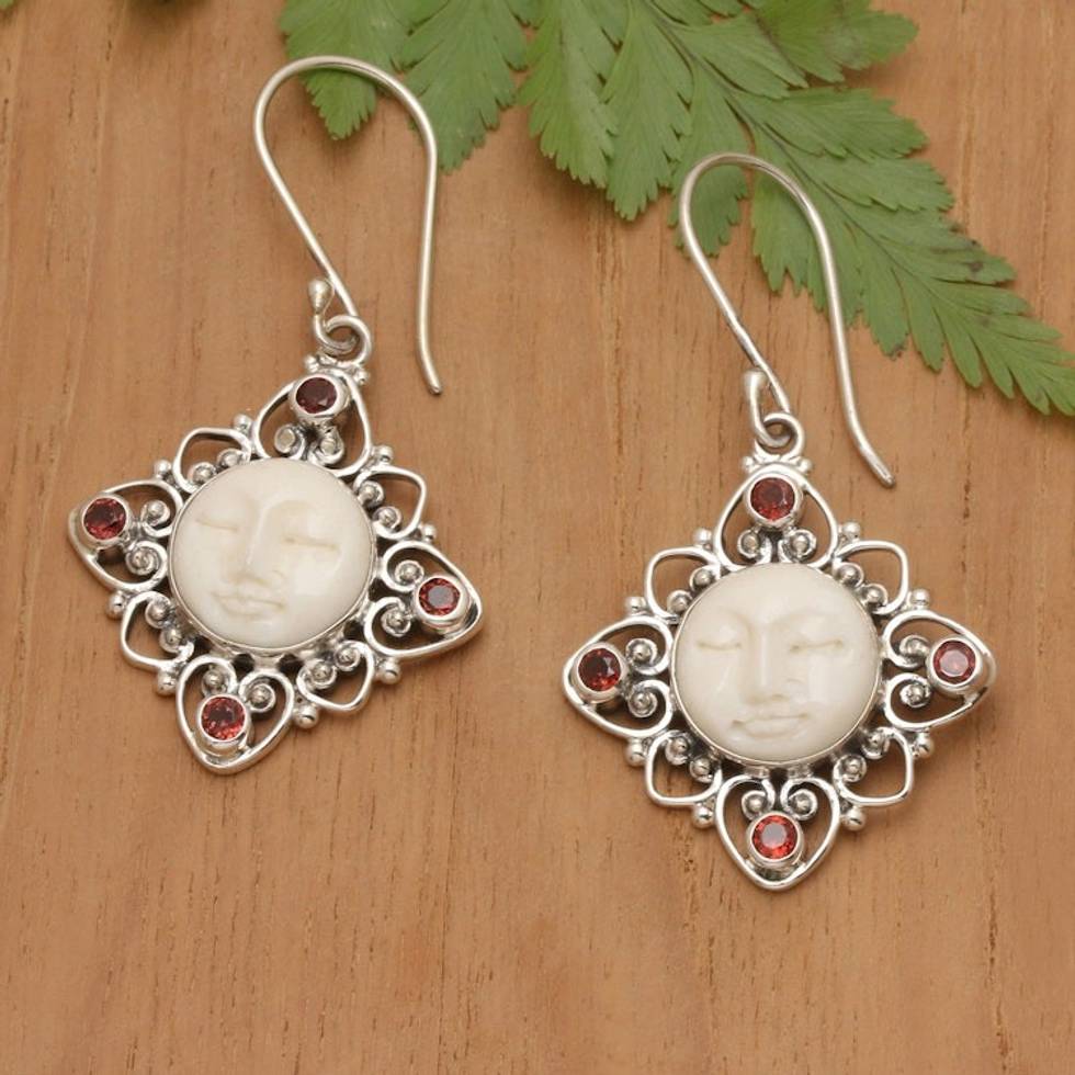 Sterling Silver and Garnet Sleeping Moon Dangle Earrings 'Joy Dream' Item ID: 2671765761