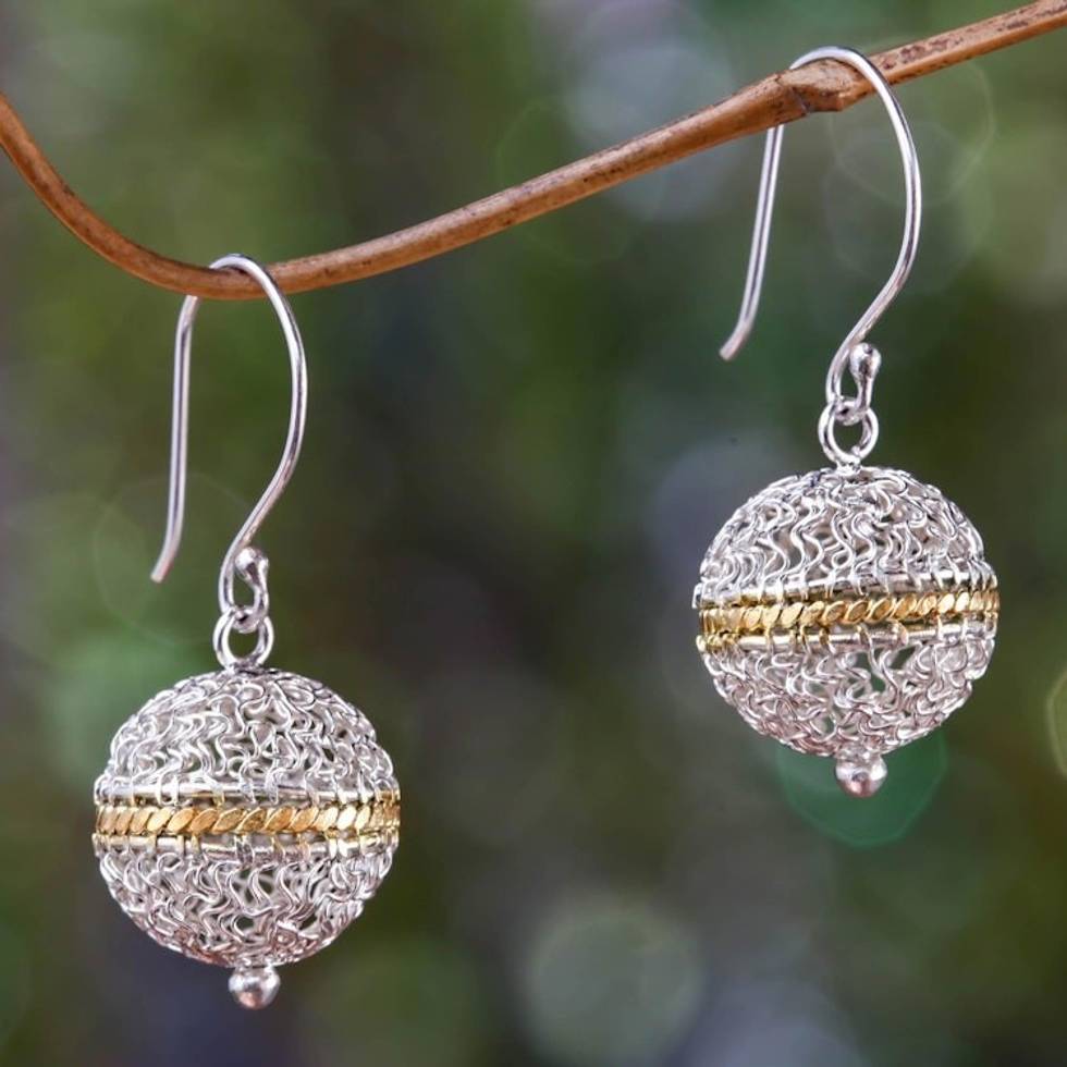 Sterling Silver and Gold Accent Dangle Earrings 'Shining Lantern' Item ID: 2671702169