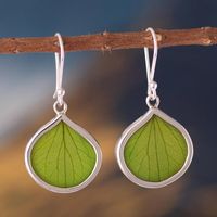 Sterling Silver and Green Leaf Dangle Earrings from Peru 'Spring Green Hydrangea' Item ID: 2669919633