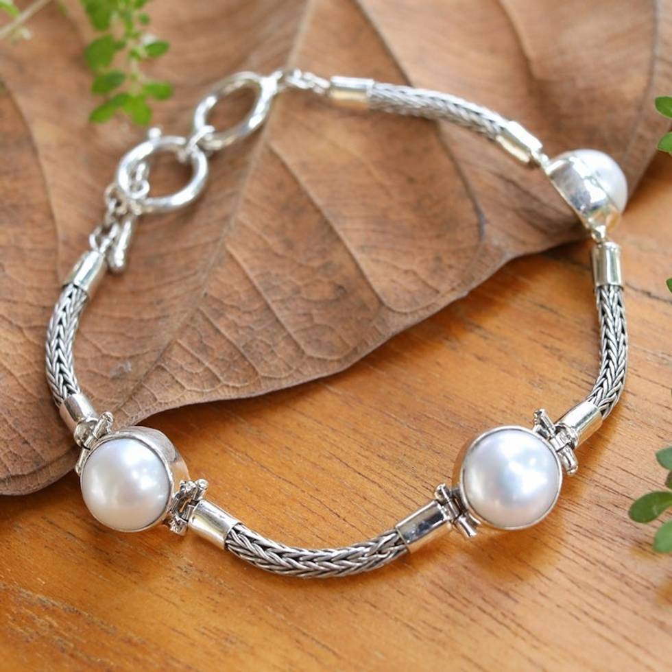 Very beautiful, danity and intricately made bracelet. The silver work attaching the pearls is equally beautiful and makes the bracelet.