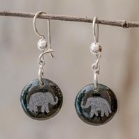 Sterling Silver and Jade Elephant Dangle Earrings 'Love of Nature - Elephant' Item ID: 2671777165