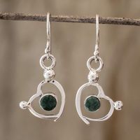 Sterling Silver and Jade Heart Dangle Earrings 'Ancestral Love' Item ID: 2671777224