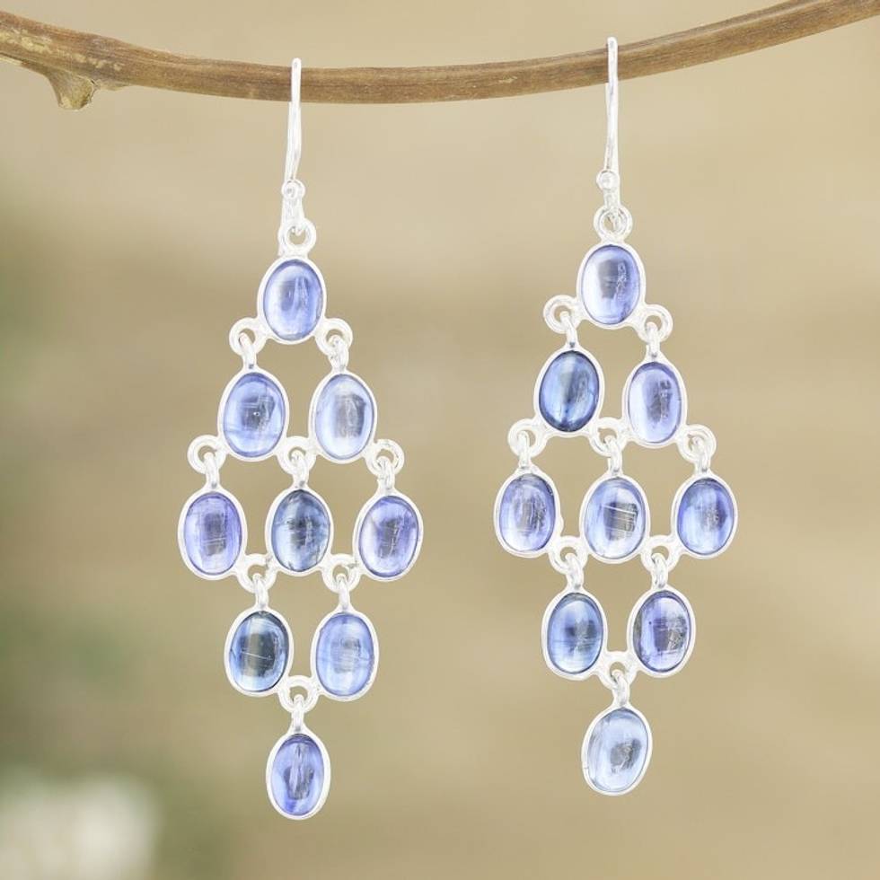 Sterling Silver and Kyanite Chandelier Earrings from India 'Meditation Drops' Item ID: 2669924552