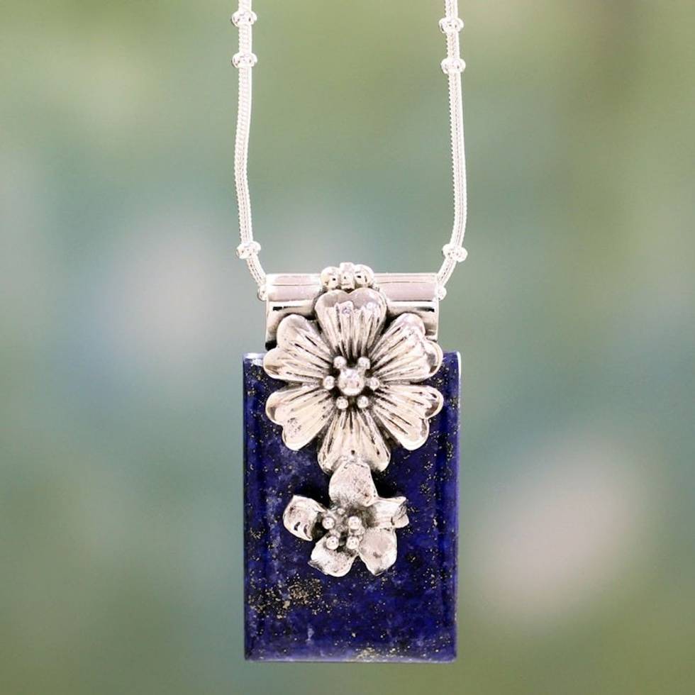 Sterling Silver and Lapis Lazuli Necklace Women's Jewelry 'Blue Lily' Item ID: 2671620406