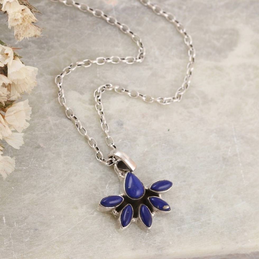 Sterling Silver and Lapis Lazuli Pendant Necklace from India 'Truth Crown' Item ID: 2671789025