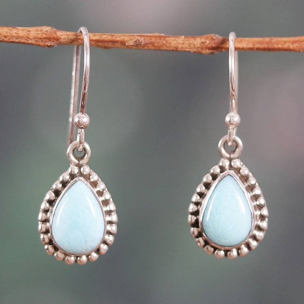 Sterling Silver and Larimar Drop Shaped Dangle Earrings 'Sky Dewdrops' Item ID: 2671781936
