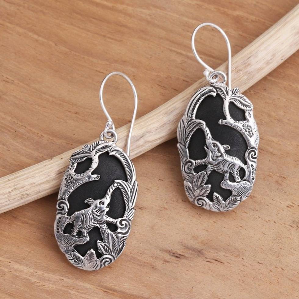Sterling Silver and Lava Stone Elephant Dangle Earrings 'Elephant Habitat' Item ID: 2671478901
