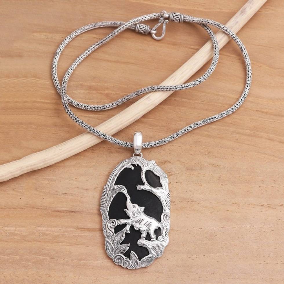 Sterling Silver and Lava Stone Elephant Pendant Necklace 'Elephant Habitat' Item ID: 2671745038