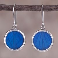 Sterling Silver and Natural Leaf Earrings in Blue from Peru 'Blue Eden' Item ID: 2671400808