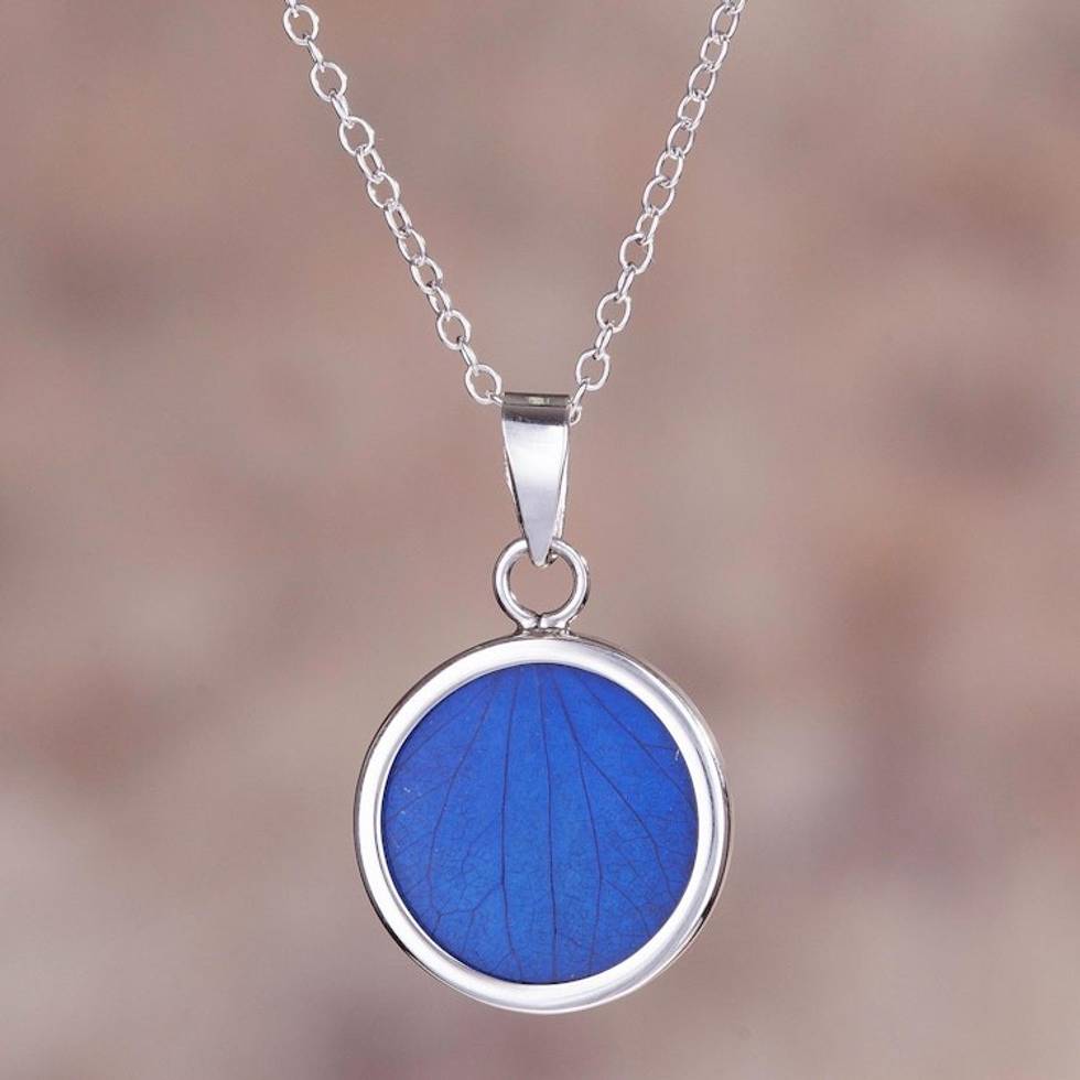 Sterling Silver and Natural Leaf Necklace in Blue from Peru 'Blue Eden' Item ID: 2669919341