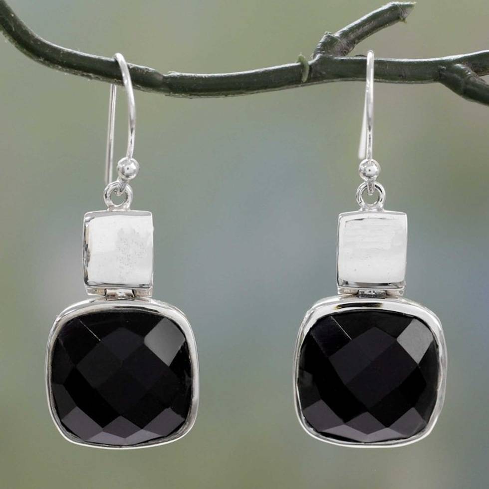 Sterling Silver and Onyx Drop Earrings 'Delight' Item ID: 2669943903