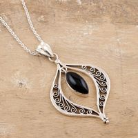 Sterling Silver and Onyx Pendant Necklace 'Midnight Petal' Item ID: 2669924230