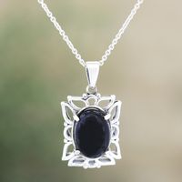 Sterling Silver and Onyx Pendant Necklace 'Black Botanicals' Item ID: 2671789062