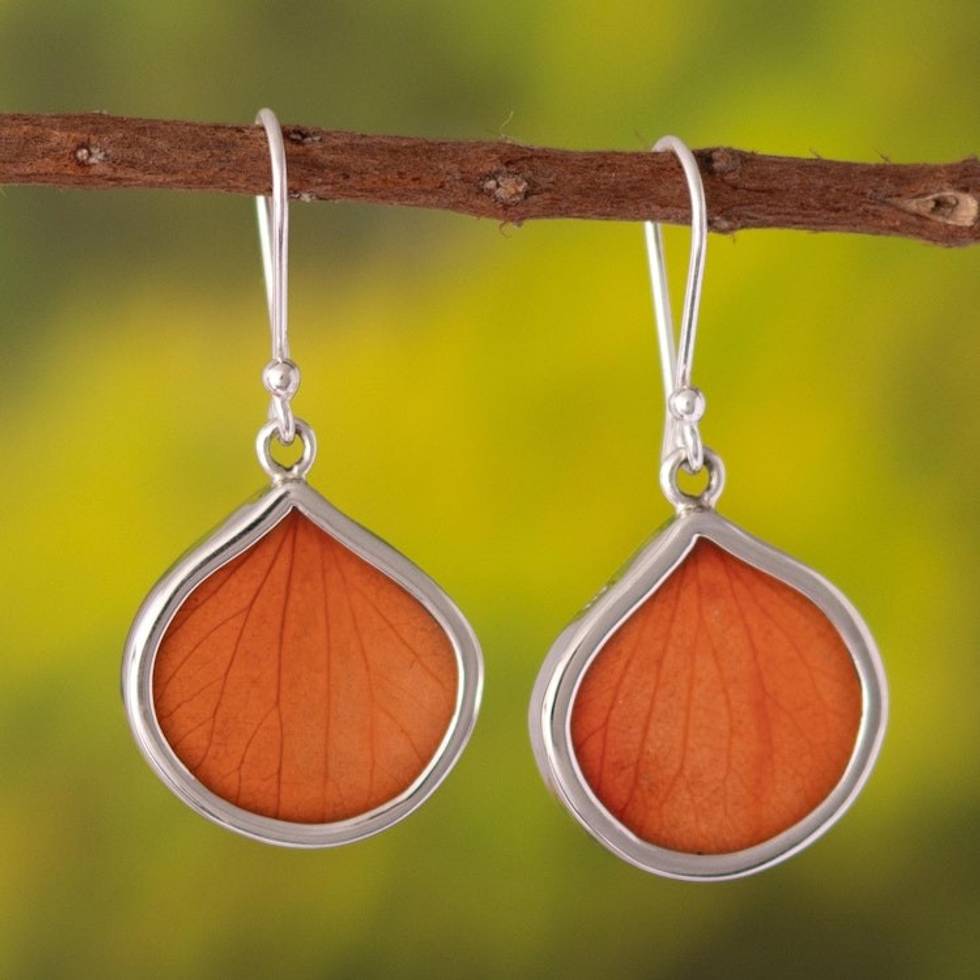 Sterling Silver and Orange Leaf Dangle Earrings from Peru 'Orange Hydrangea' Item ID: 2671820322