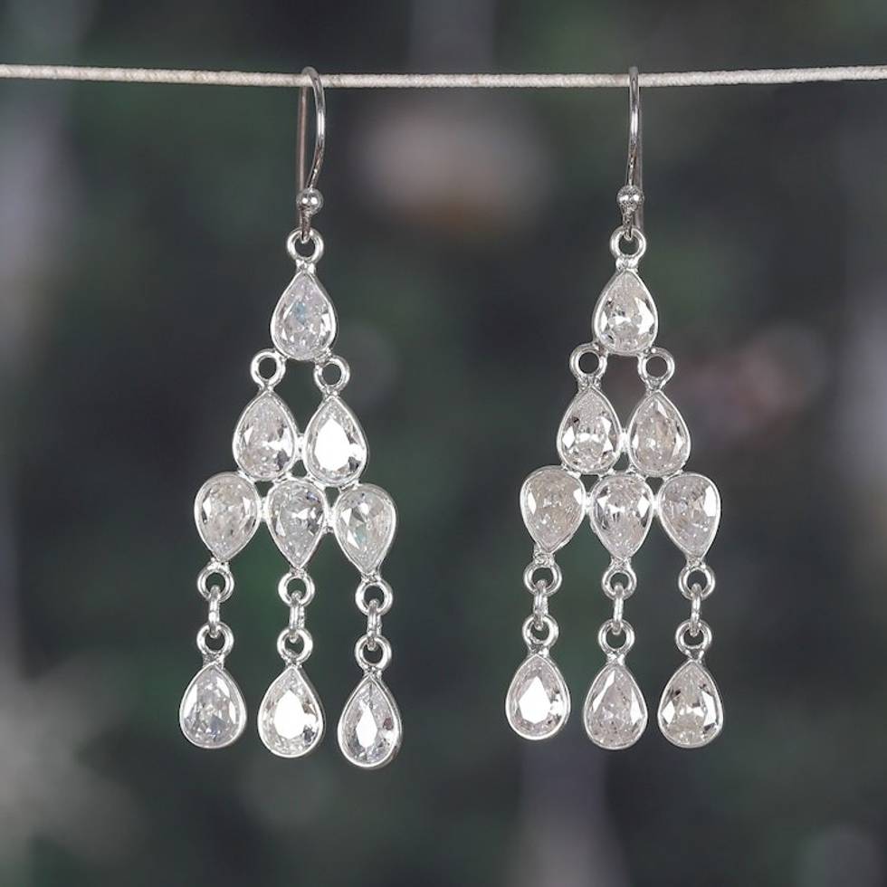 Sterling Silver and Pear Cubic Zirconia Chandelier Earrings 'Glimmering Cascade' Item ID: 2671781103