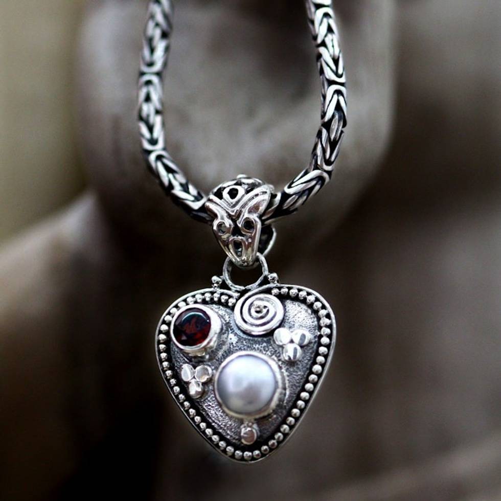 Sterling Silver and Pearl Heart Necklace 'So in Love' Item ID: 2669922032