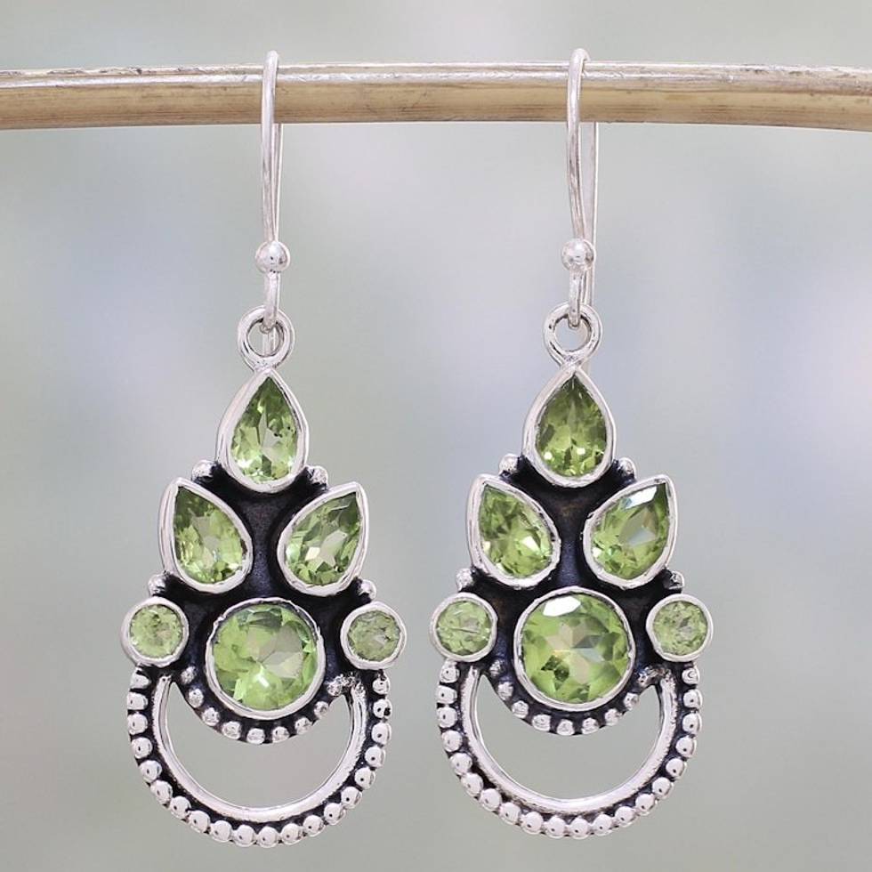 Sterling Silver and Peridot Bollywood Glam Earrings 'Radiant Green' Item ID: 2671790793