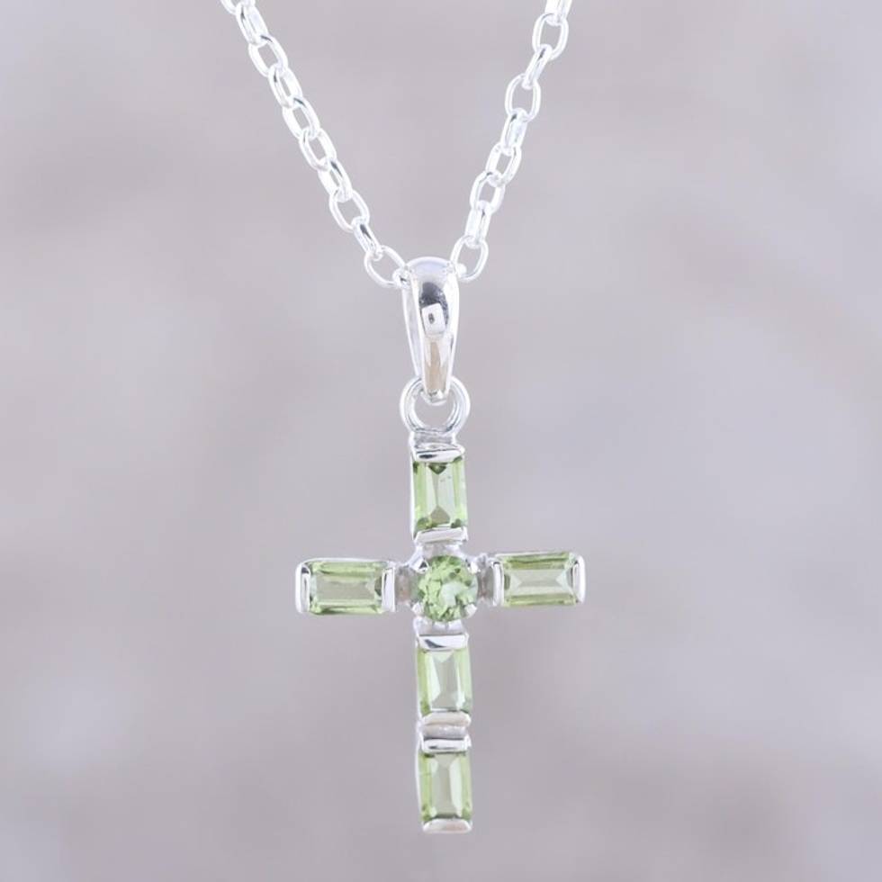Sterling Silver and Peridot Cross Pendant Necklace 'Kolkata Cross' Item ID: 2671620039