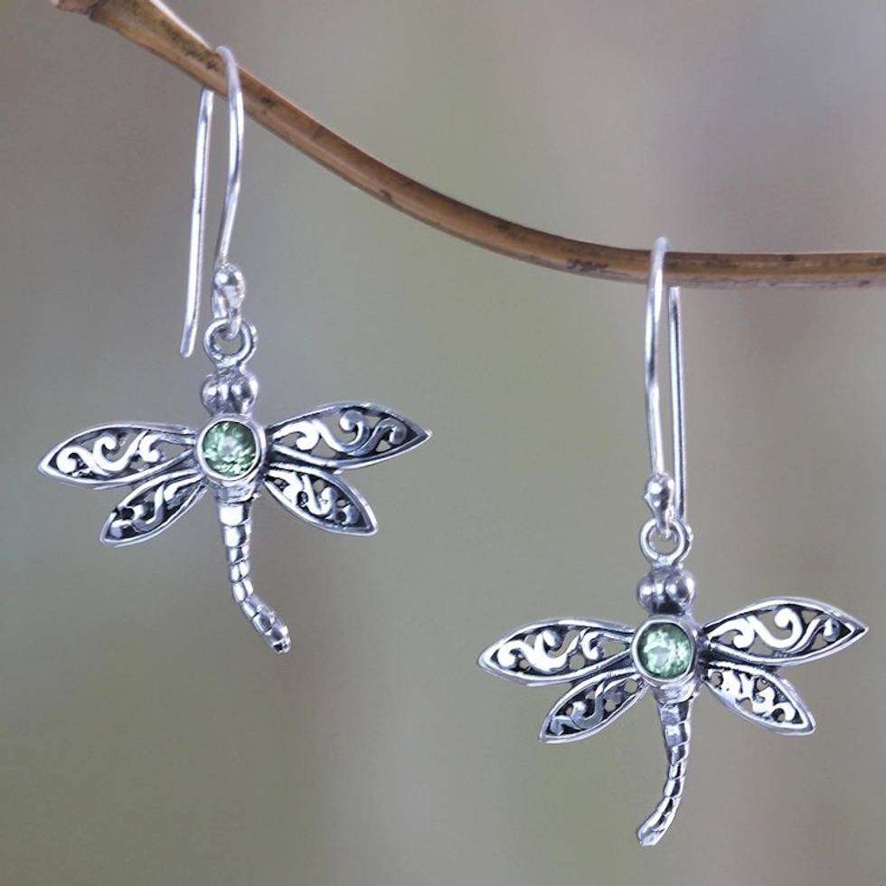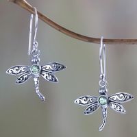 Sterling Silver and Peridot Dangle Earrings 'Enchanted Dragonfly' Item ID: 2671700083