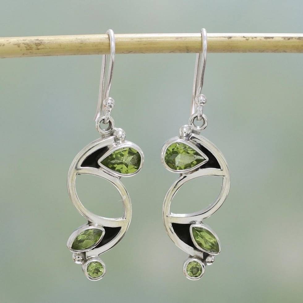 Sterling Silver and Peridot Earrings Fair Trade Jewelry 'Intricate Harmony' Item ID: 2671794997