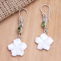 Sterling Silver and Peridot Floral Dangle Earrings 'Springtime Frangipani' Item ID: 2671747491