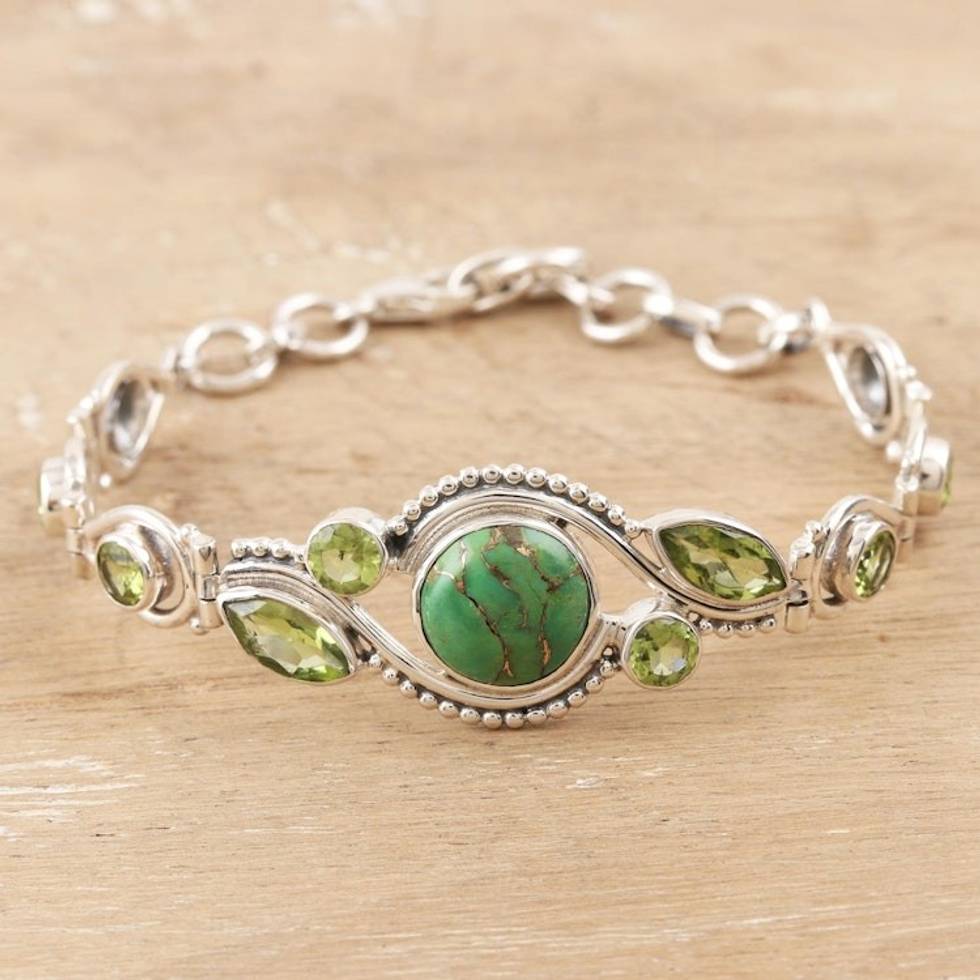 Sterling Silver and Peridot Pendant Bracelet 'Earth Glow in Green' Item ID: 2671788606