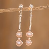 Sterling Silver and Pink Cultured Peal Earrings 'Rose Rising' Item ID: 2671772045