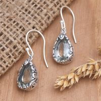 The blue topaz is so clear and beautiful. The craftsmanship of both earrings excellent. I love wearing these. I've been looking for years for something like these earrings. Perfect size and color. Thank you Komang!