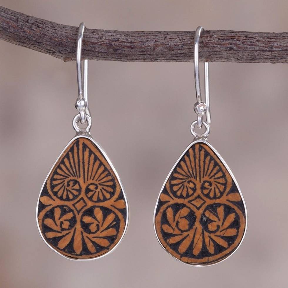 Sterling Silver and Pumpkin Shell Dangle Earrings from Peru 'Infinite Cosmos' Item ID: 2671820066