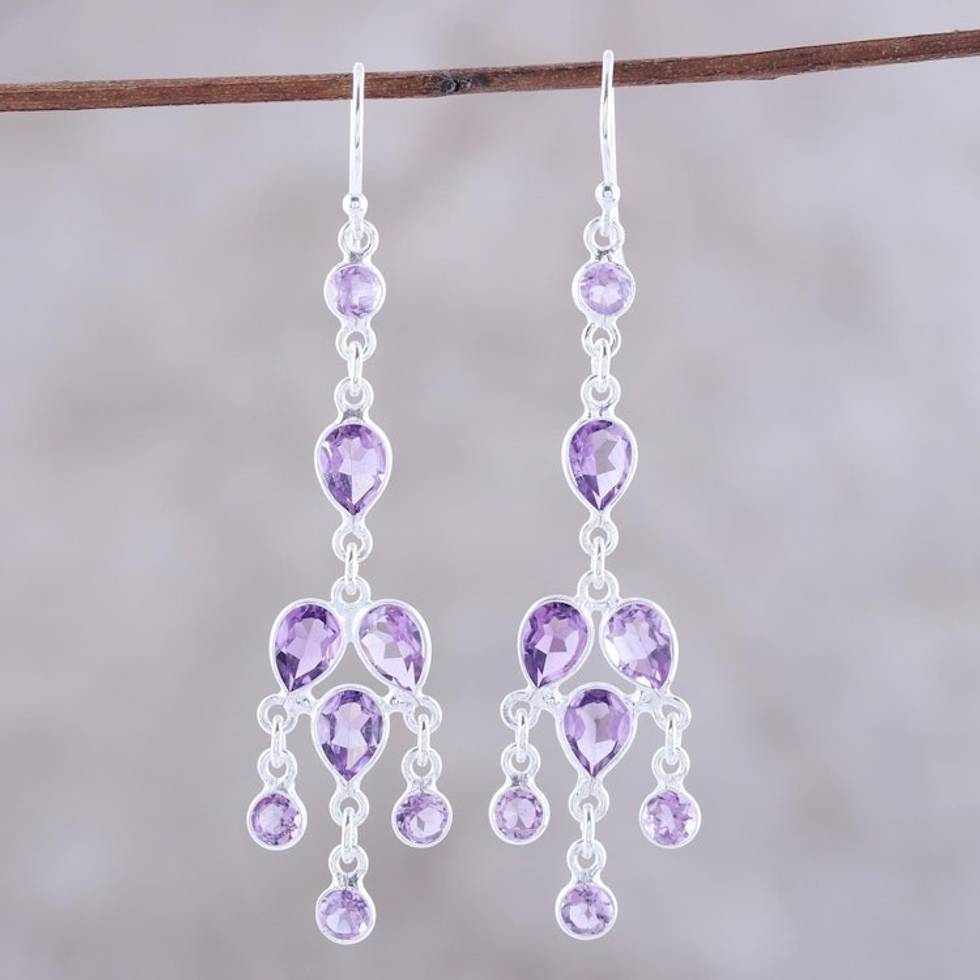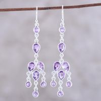 Sterling Silver and Purple Amethyst Chandelier Earrings 'Leafy Adornment' Item ID: 2671619159