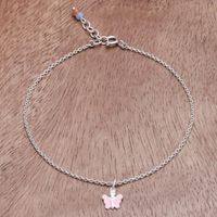 Sterling Silver and Quartz Butterfly Anklet from Thailand 'Butterfly Nature' Item ID: 2671799615