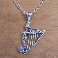Sterling Silver and Rainbow Moonstone Angelic Harp Necklace 'Angelic Harp' Item ID: 2671735567