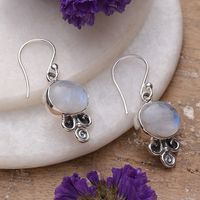 Sterling Silver and Rainbow Moonstone Dangle Earrings 'Magic Glam' Item ID: 2671782658