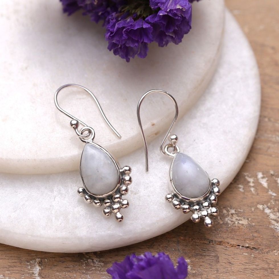 These moonstone earrings are great for daily wear. I really love the checkerboard cut stones! The weight of these earrings is just right for my sensitive ears.