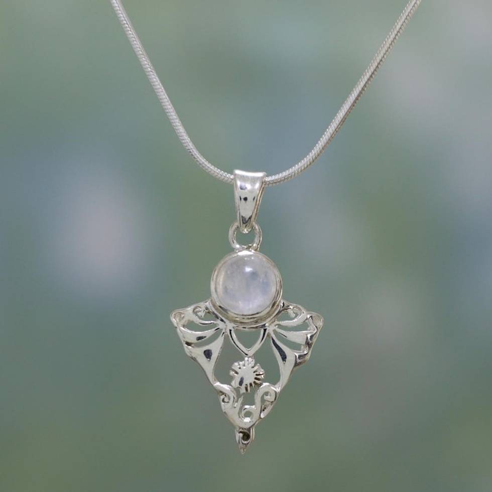 Sterling Silver and Rainbow Moonstone Necklace 'Rainbow Fern' Item ID: 2671794832