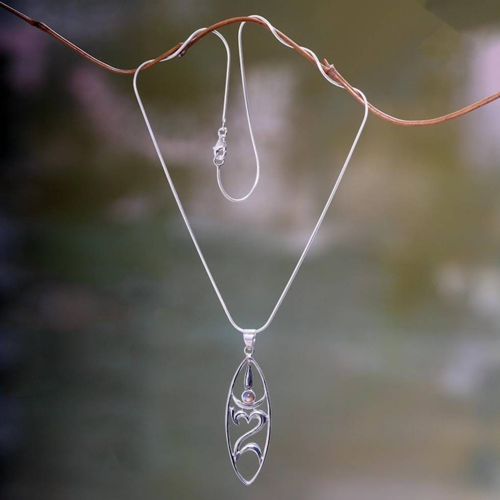 Sterling Silver and Rainbow Moonstone Pendant Necklace 'Peace for the World' Item ID: 2669920580