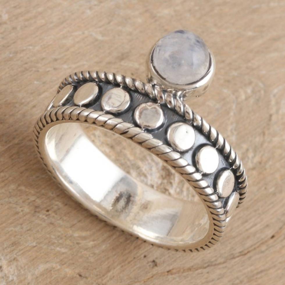 Sterling Silver and Rainbow Moonstone Single Stone Ring 'Misty Crown' Item ID: 2671789087