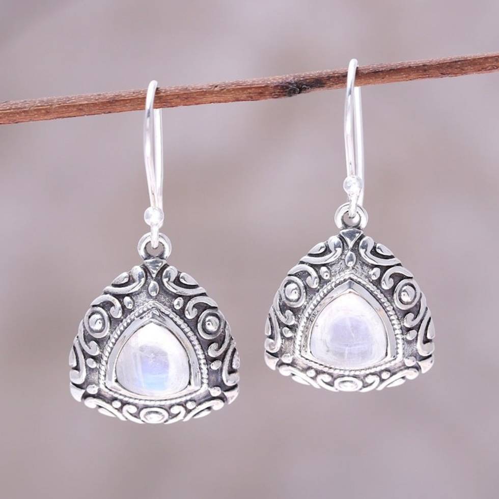 Sterling Silver and Rainbow Moonstone Triangle Earrings 'Waterfall Mist' Item ID: 2671791706