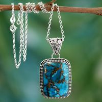 Sterling Silver and Recon Turquoise Necklace from India 'Delhi Blue' Item ID: 2671794815