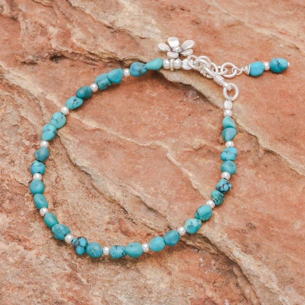 Sterling Silver and Reconstituted Turquoise Bracelet 'Sea Flower' Item ID: 2671800040
