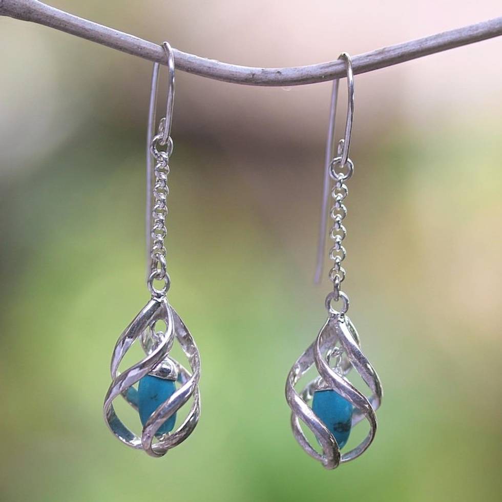 Sterling Silver and Reconstituted Turquoise Dangle Earrings 'Turquoise Cocoon' Item ID: 2671747830