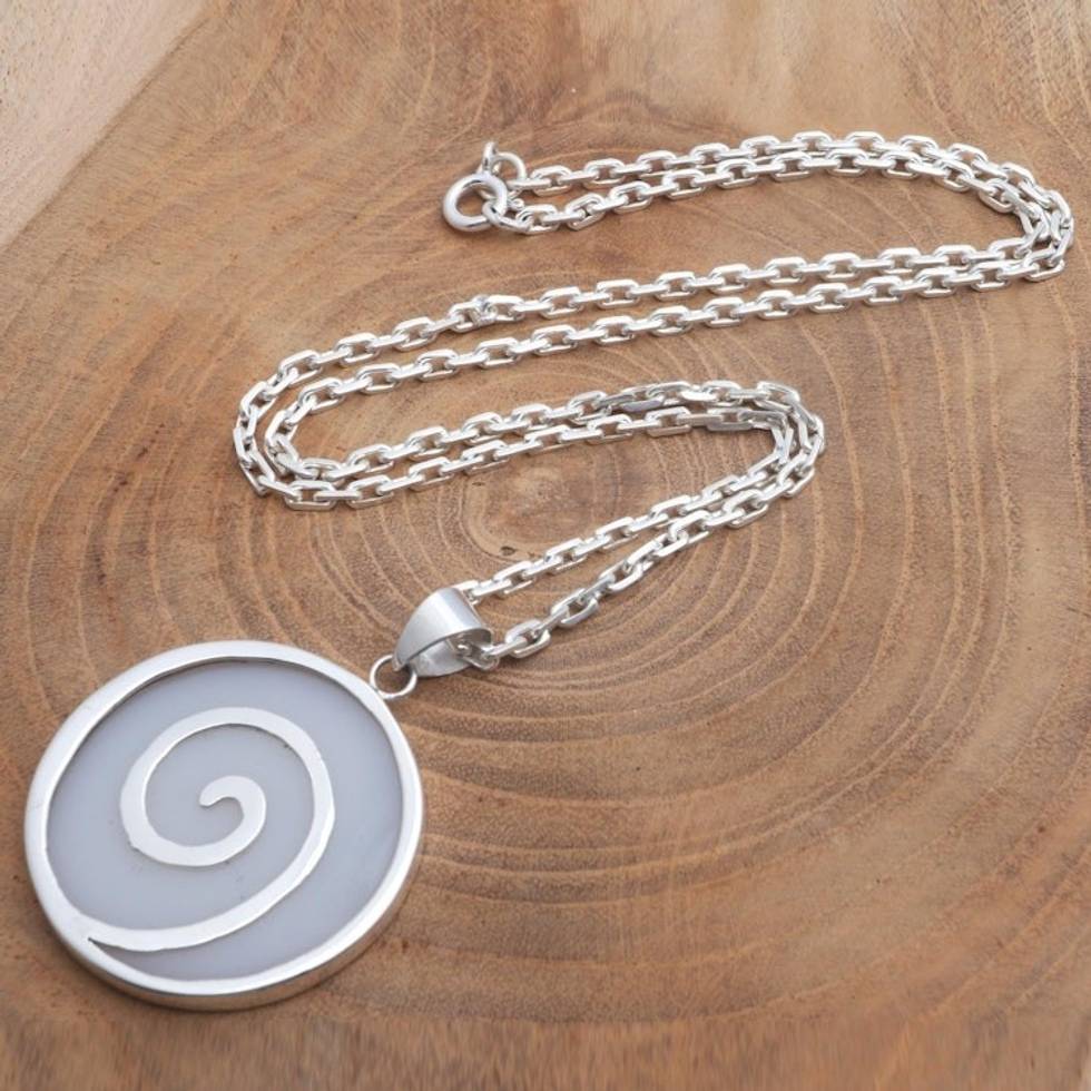 Sterling Silver and Resin Swirl Pendant Necklace from Bali 'Misty Swirl' Item ID: 2671737804