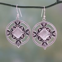 Sterling Silver and Rose Quartz Hook Earrings from India 'Jaipur Romance' Item ID: 2671793640